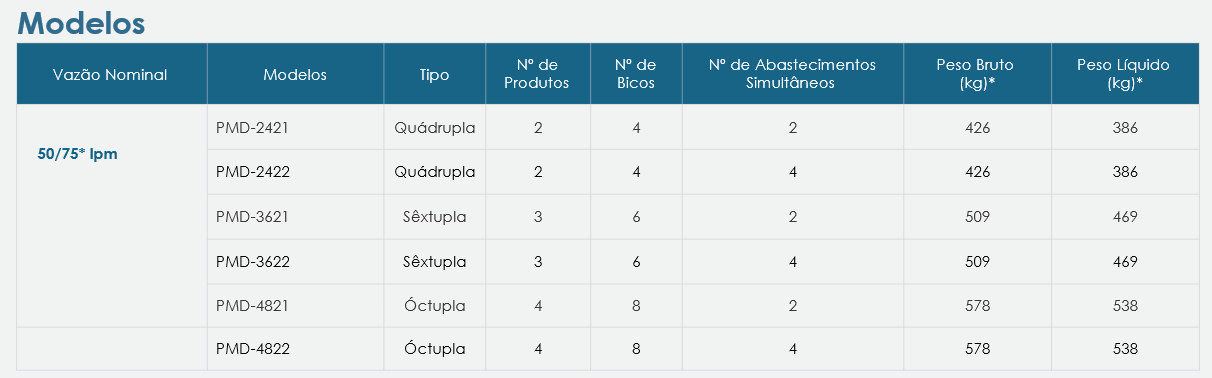 Os modelos com 4, 6 e 8 bicos ampliam a oferta de produto por ilha e agiliza significativamente o atendimento aos clientes.