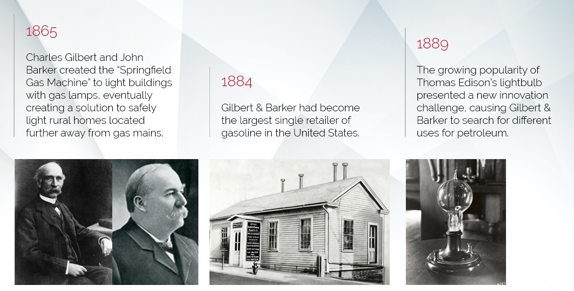 - Gilbert & Barker Manufacturing Co. acquired by Standard Oil Company (Standard Oil Company later becomes Exxon).