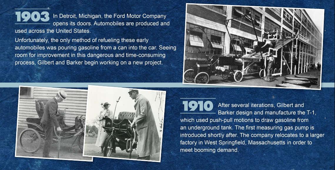 - Gilbert & Barker Manufacturing Co. relocates to new factory in West Springfield, Massachusetts, to manufacture measuring and visible pumps.