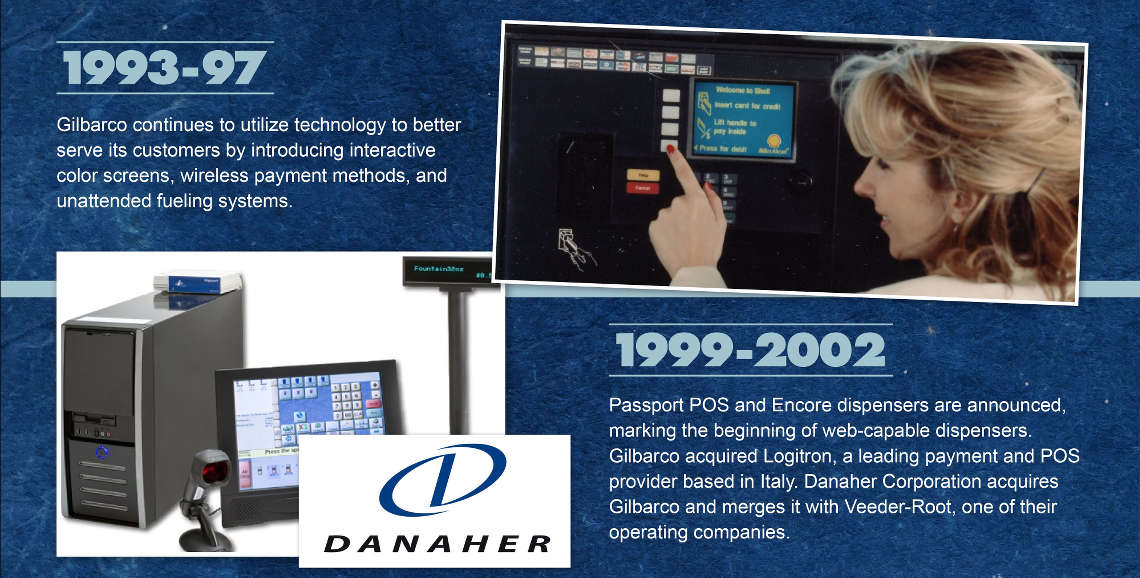 - Danaher Corporation acquires Gasboy International Inc. ("Gasboy"). Gasboy operations are relocated to Greensboro, NC and merged with Gilbarco Veeder-Root.